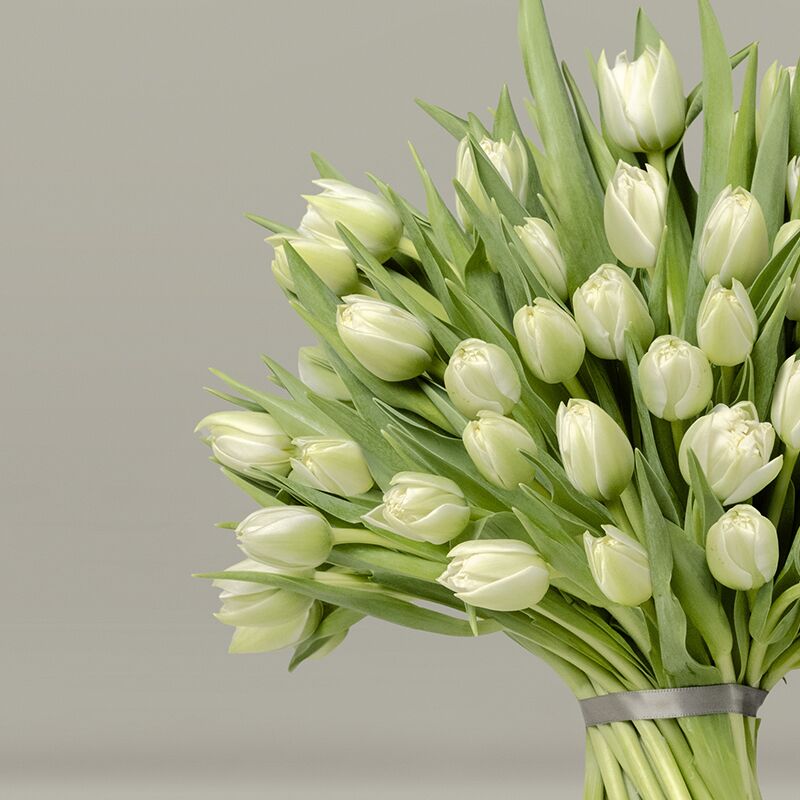 Graceful, elegant and understated – this bouquet of homegrown white tulips celebrates simplicity at its finest. With a lower carbon footprint than imported options, these seasonal stems are a beautiful and responsible choice.