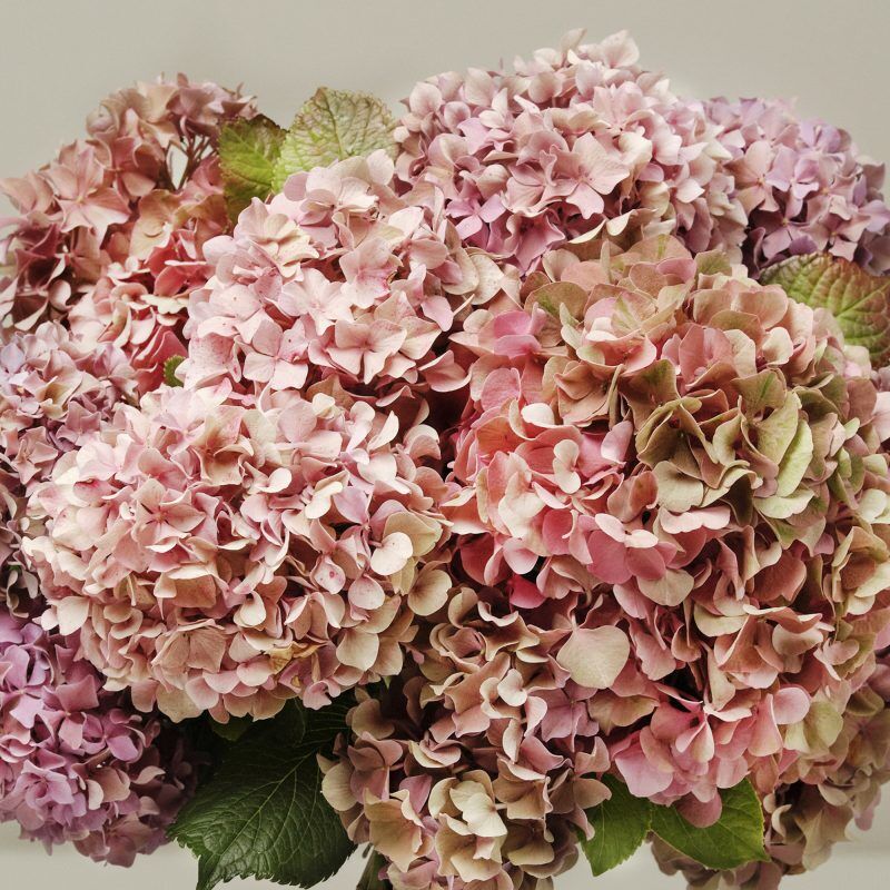 These seasonal hydrangeas are grown in the UK and are harvested as the colours begin to fade into beautifully mottled, autumnal tones. British hydrangeas have shorter stems but an abundance of flower heads in varying tones of pink and russet.
