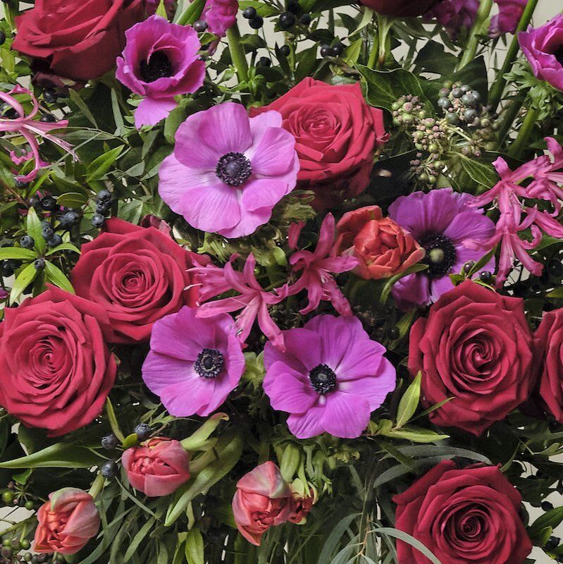 Named after one of Britains most iconic poets, this Paul Thomas luxury hand-tied bouquet evokes Lord Byron’s colourful character with clashing red and cerise tones.