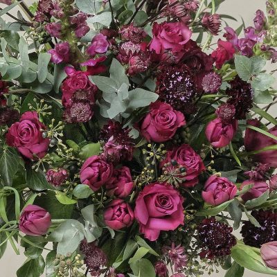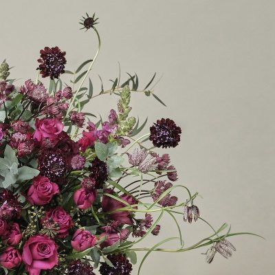 Exquisitely dark and beautifully brooding deep magenta and purple tones make the Coleridge stand out from the crowd. This luxury Paul Thomas bouquet features unusual varieties of scabiosa and snakeshead fritillary which will twist and dance over time.