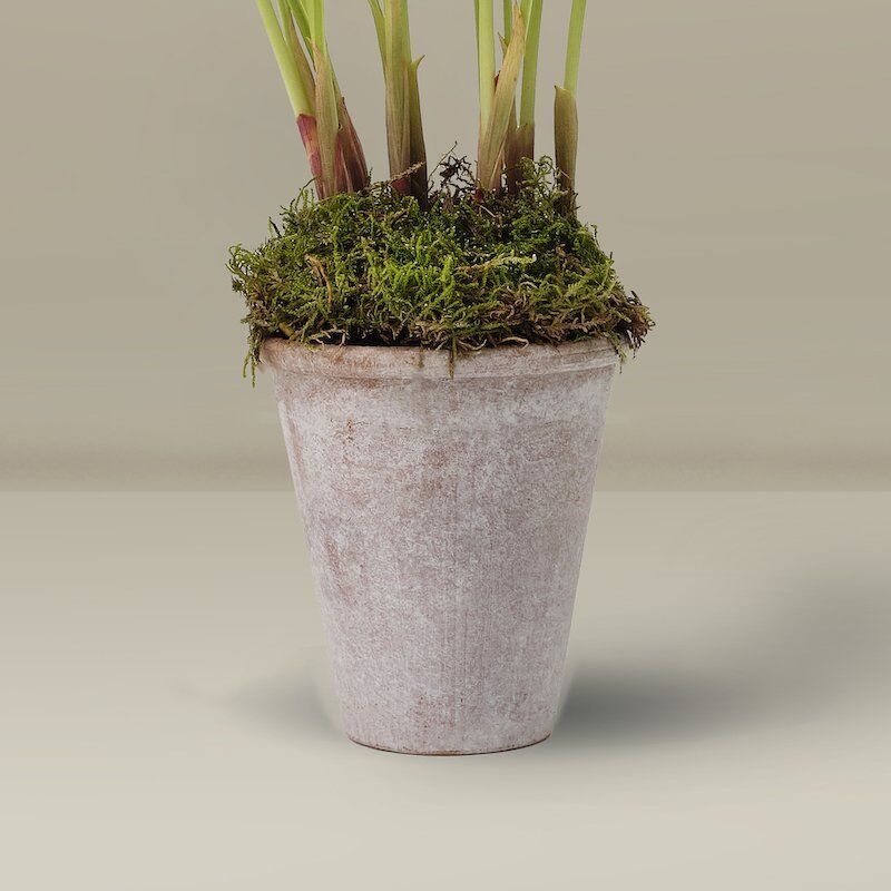 Standing at approximately 26cm tall, the neutral green foliage and white flowers combined with the whitewashed terracotta pot will complement any interior.