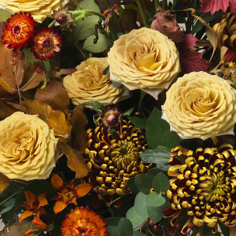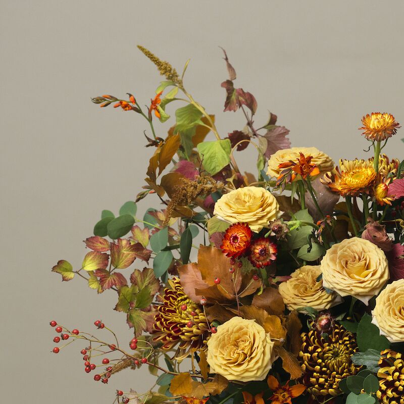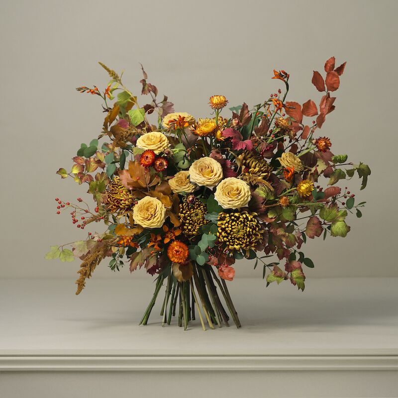 With pale golden blooms, luscious berries and bold brushstrokes of seasonal foliage, The Hockney epitomises the sunset shades of the autumnal garden.
