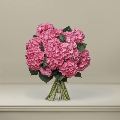 The elegant simplicity of our single variety bouquets of hydrangeas makes for an effortlessly beautiful gift or decoration fo your own home. With long stems and flower heads measuring around 20cm in diameter, these bold, cerise hydrangeas epitomise the warmer summer season.