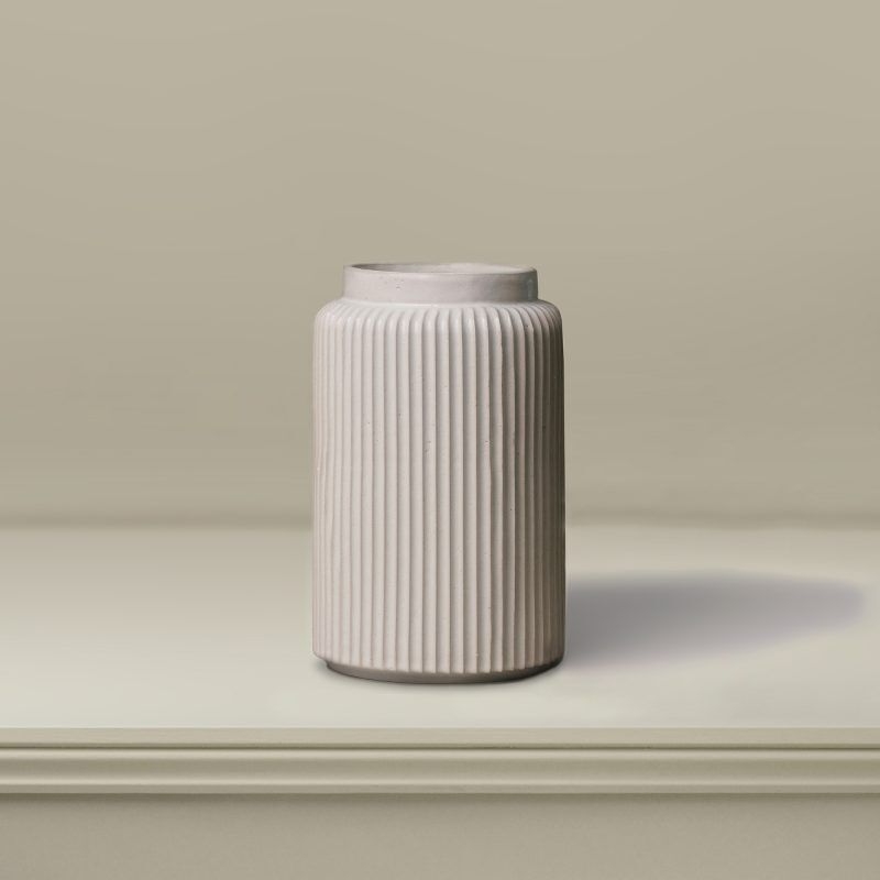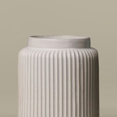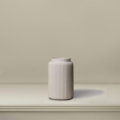 With ridged sides and softly curving shoulders, The Lutyens Vase has a subtly recessed base and narrower neck to hold the flowers perfectly in place. Finished with a matte, light beige coloured glaze this vase has been designed to house our size ’L – XXL’ bouquets.