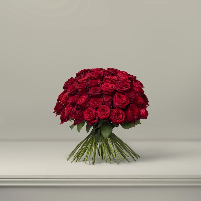 The ultimate symbol of true love; the red rose is a timeless classic and this bouquet celebrates the perennial favourite in all its rich, velvety glory. Comprising solely of the highest