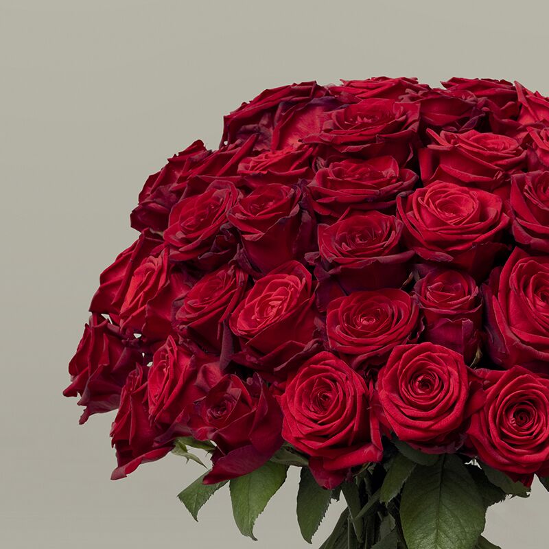 The ultimate symbol of true love; the red rose is a timeless classic and this bouquet celebrates the perennial favourite in all its rich, velvety glory. Comprising solely of the highest