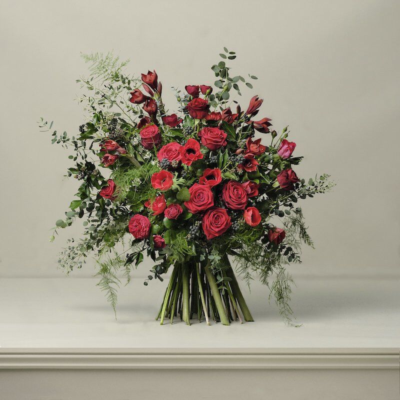 Packed full of luxurious, seasonal blooms in the richest shades of red, this Paul Thomas hand-tied bouquet is the ultimate romantic gesture; perfect for St. Valentine’s Day or everyday.