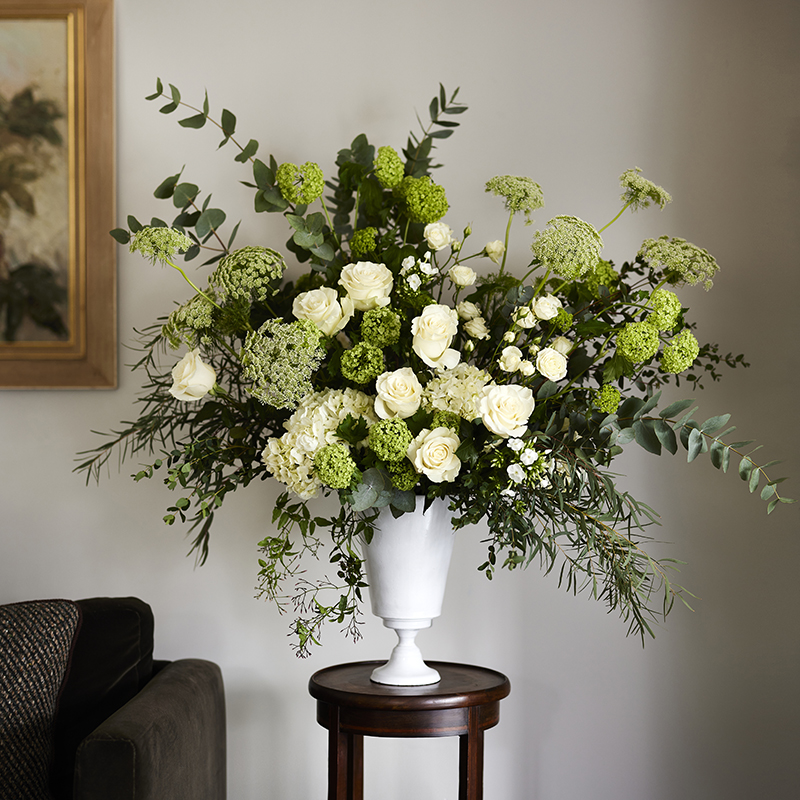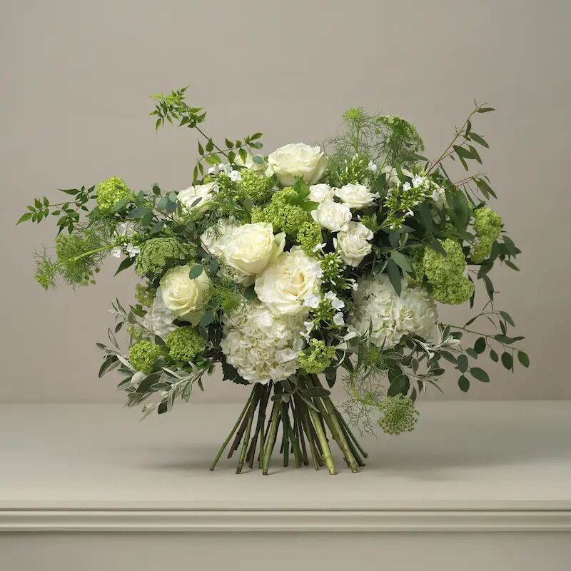 A classic, white and green bouquet featuring English country garden favourites, The Sissinghurst is appropriate for any occasion.