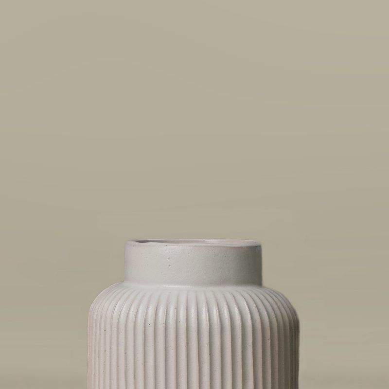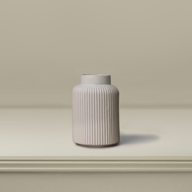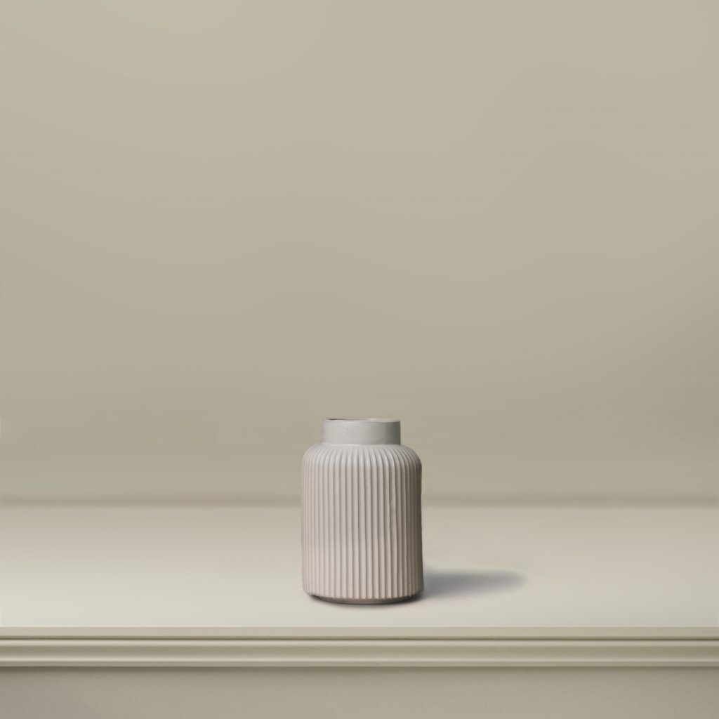 With ridged sides and softly curving shoulders, The Lutyens Vase has a subtly recessed base and narrower neck to hold the flowers perfectly in place. Finished with a matte, light beige coloured glaze this vase has been designed to house our size ’S’ bouquets.