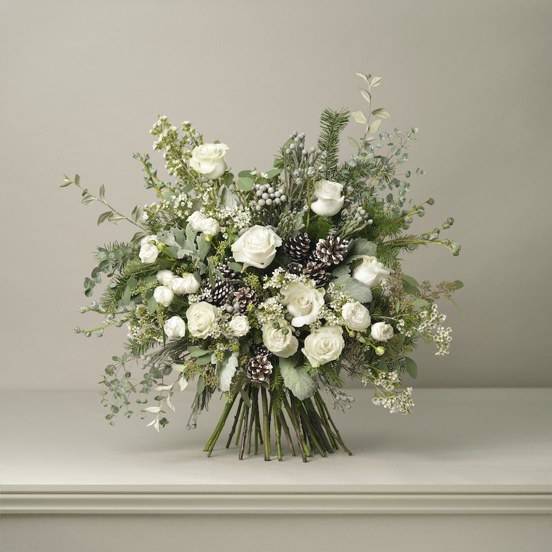 With winter white blooms, silvery seeded eucalyptus, frosted pine cones and scented spruce, The Snowdon is evocative of a winter wonderland under a fresh dusting of snow.