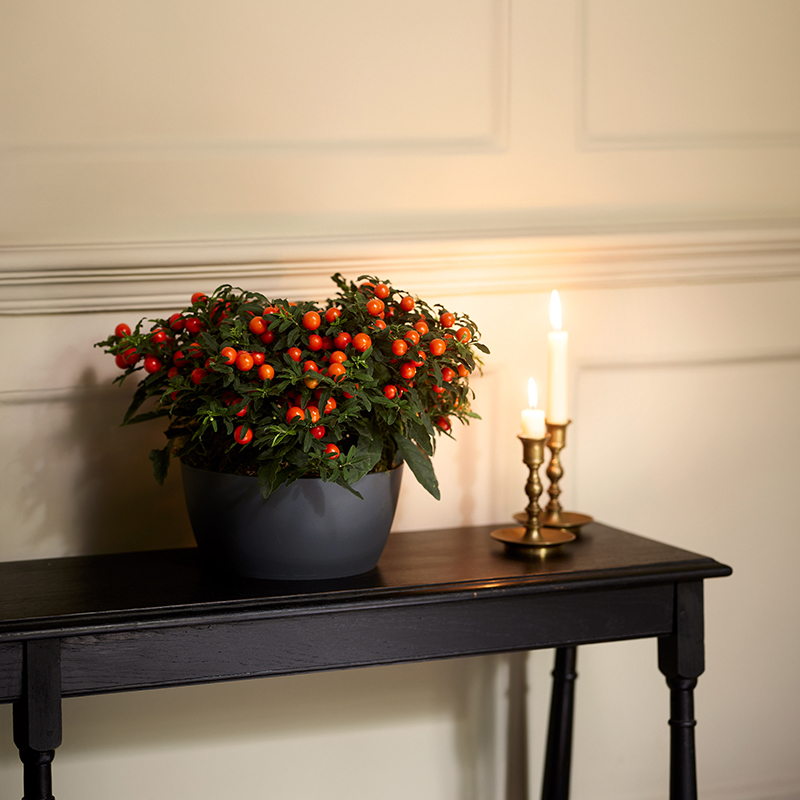 £60.00Filled with miniature Winter Cherry plants and neatly finished with moss, The Lichfield Gold Planter makes a beautiful festive gift or living decoration for your home over the festive period.