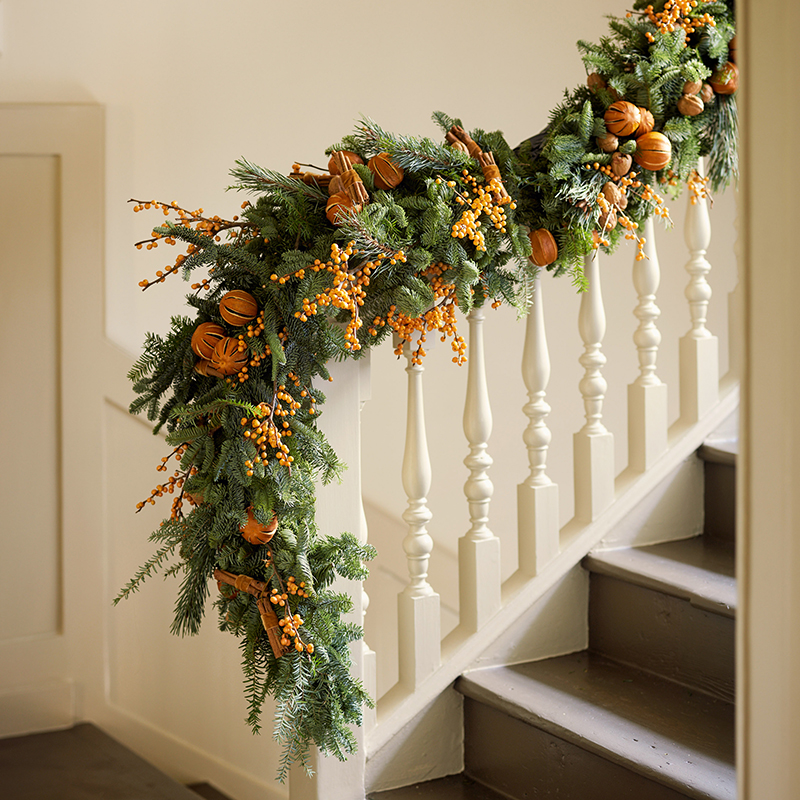 £295.00Featuring fragrant dried oranges, cinnamon and walnuts with gleaming berries and festive fir, The Lichfield Gold Garland is a real winter warmer.