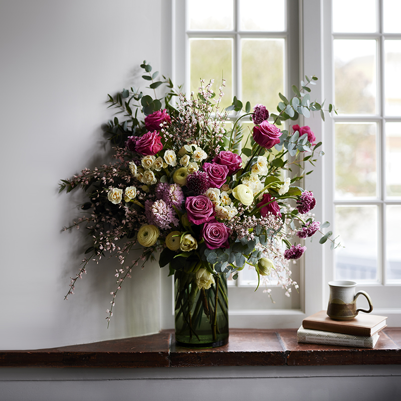 From: £95.00 – £375.00Price range: £95.00 through £375.00A pretty combination of delicate blooms in various shades of pink, this Paul Thomas luxury hand-tied bouquet evokes the sights and scents of an English cottage garden.